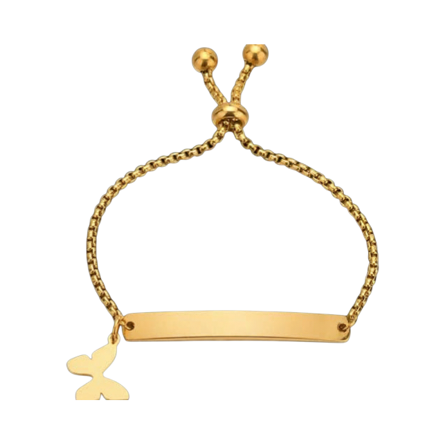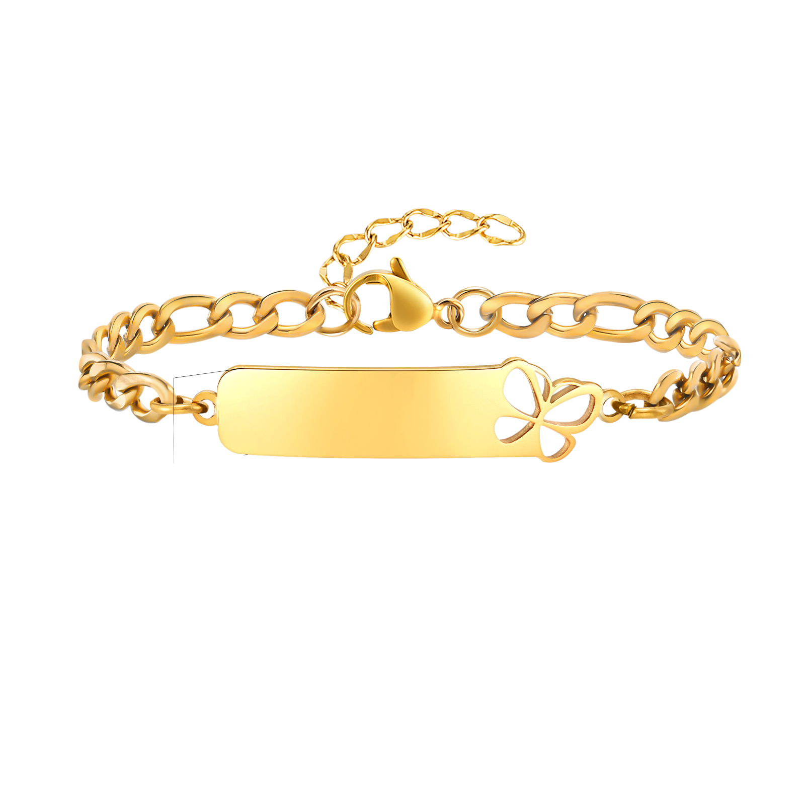 Make a lasting impression with a custom butterfly bracelet designed to match your child's personality. Choose this elegant gold stainless steel offering superior durability and a polished finish that resists fading. The hypoallergenic construction keeps delicate skin comfortable, while personalization transforms it into a meaningful keepsake they'll treasure. Whether marking a special occasion or simply celebrating who they are, this bracelet combines timeless appeal with practical wear-ability. It's the perfect blend of fun character design and quality craftsmanship that stands up to an active childhood.